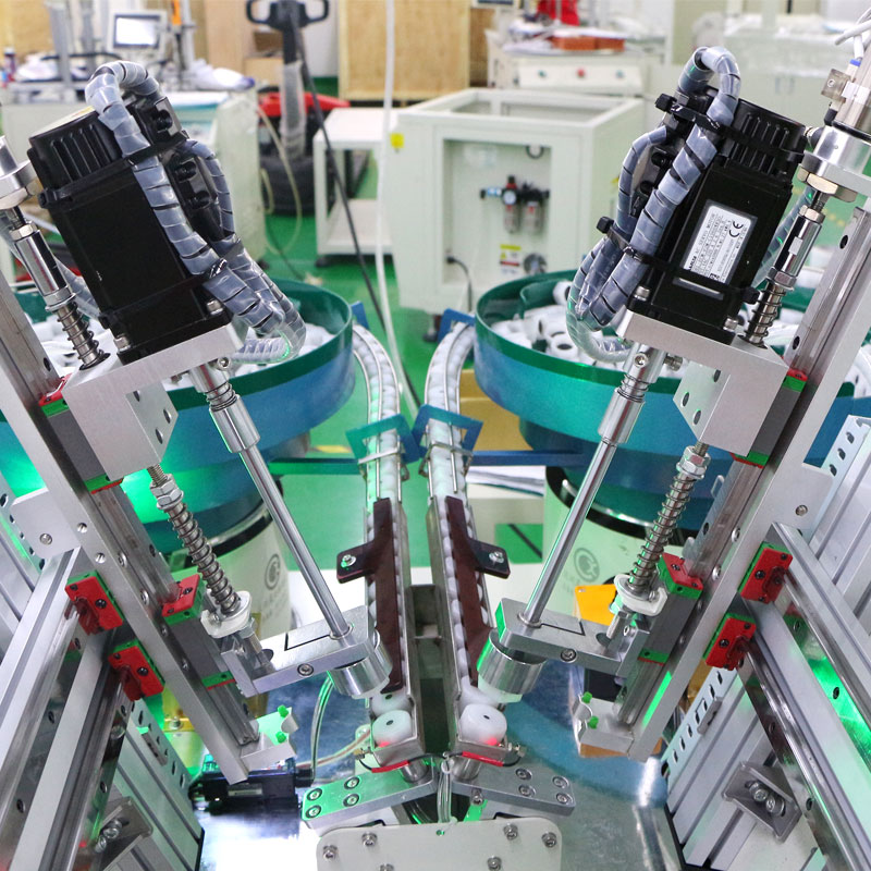 - 產(chǎn)品簡(jiǎn)介: 加油泵是一種小型加油產(chǎn)品,應(yīng)用廣泛。一般加油泵的泵體外部設(shè)有運(yùn)輸帽,(安全閥),由人工完成比較費(fèi)時(shí)、費(fèi)力,生產(chǎn)效率比較低,加工有一定的難度,并且工作時(shí)不太穩(wěn)定,而且還會(huì)出現(xiàn)旋緊力不均等問題。為此廠家會(huì)考慮到自動(dòng)生產(chǎn)組裝機(jī)器完成此類操作。 飛速自動(dòng)化廠家按照客戶要求根據(jù)產(chǎn)品進(jìn)行設(shè)計(jì)一臺(tái)加油泵全自動(dòng)組裝螺母螺帽機(jī),能夠替代人工放置運(yùn)輸帽緊固,可以達(dá)到提升組裝運(yùn)輸帽工作效率的自動(dòng)化上送膠蓋設(shè)備。產(chǎn)品為加油泵運(yùn)輸帽,每個(gè)產(chǎn)品需按照兩個(gè)膠蓋,設(shè)備要實(shí)現(xiàn)兩顆螺帽安裝至產(chǎn)品上,并且能夠一步到位精確度高,為此將設(shè)備設(shè)計(jì)為傾斜自動(dòng)鎖付平臺(tái),這樣比較方便產(chǎn)品安裝螺帽工序,再設(shè)備兩側(cè)設(shè)立兩臺(tái)振動(dòng)盤自動(dòng)送螺帽,然后將無序工件自動(dòng)有序定向排列整齊、準(zhǔn)確地輸送到下道工序?qū)⒛z蓋吸附至工件上進(jìn)行相同的扭力矩旋轉(zhuǎn)安裝,工作時(shí),整個(gè)安裝螺母螺帽工作過程人工只需將工業(yè)產(chǎn)品的待安裝的工件放在再設(shè)定固定的工位上,設(shè)備就能自動(dòng)完成后續(xù)的組裝螺帽過程。設(shè)備設(shè)計(jì)巧妙、結(jié)構(gòu)合理。設(shè)有自動(dòng)安裝螺帽程序,自動(dòng)輸送螺帽由振動(dòng)盤裝置供料,振動(dòng)盤能夠講螺帽自動(dòng)排列 送至安裝接口上,全自動(dòng)組裝機(jī)替代了以往需人工放置緊固件的工序部分,減少了工作強(qiáng)度,降低對(duì)人工技能的熟練程度的依賴,節(jié)約了時(shí)間,達(dá)到提升安裝螺母螺帽工作效率目的。
